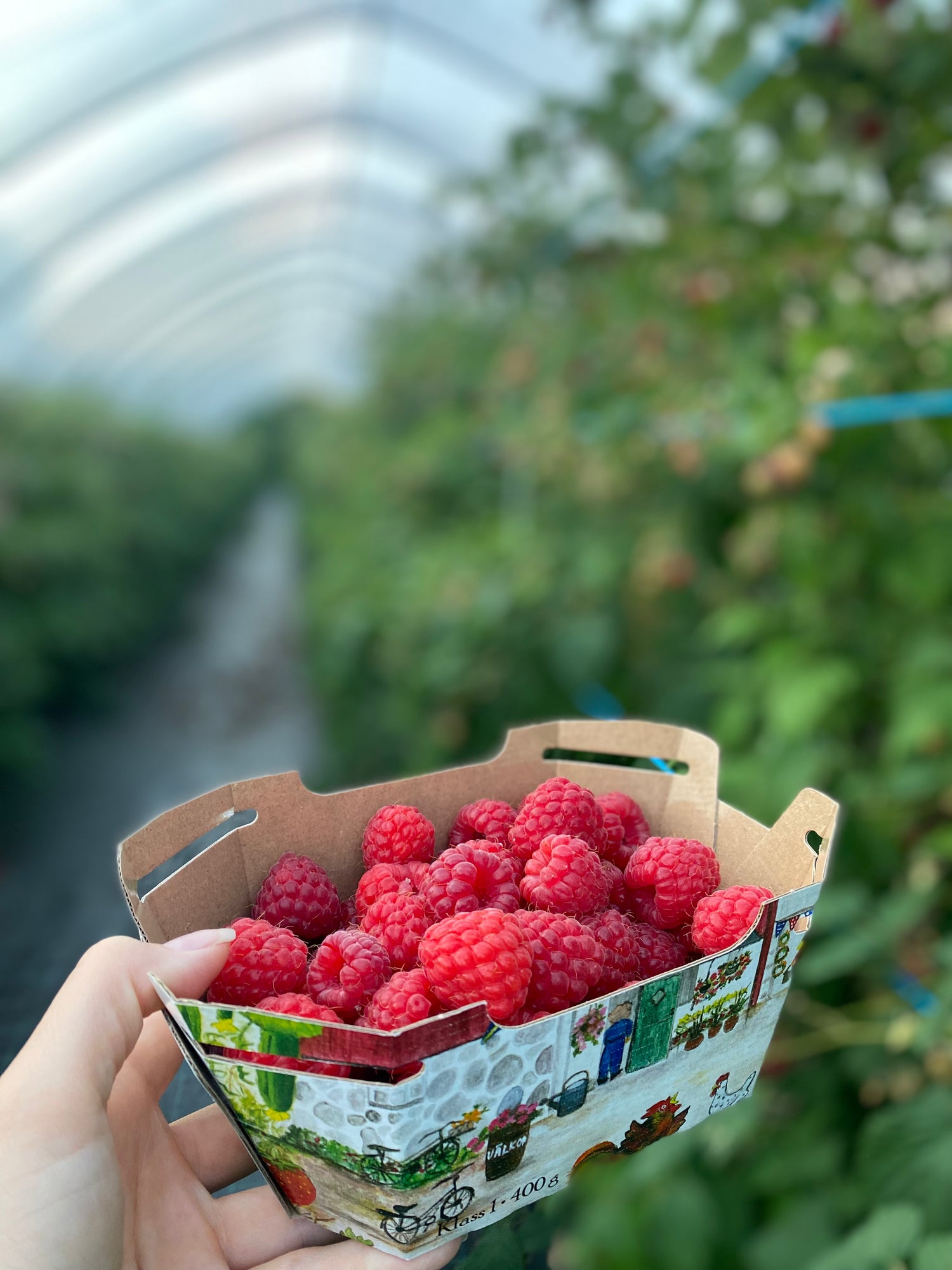 Våra hallon odlas också i tunnel vilket ger dem en skyddad och optimal växtmiljö.