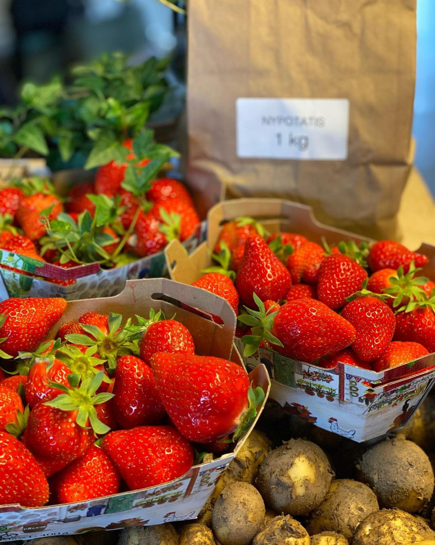 Under säsong finns nyskördade bär dagligen i vår gårdsbutik.